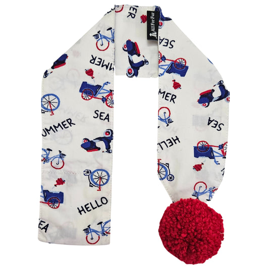 Summer Sea Navy White with Red Pom Pom Dog Scarf