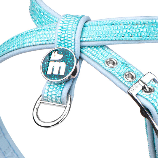 MyFamily X harness of the Saint Tropez collection in fine crafted turquoise leatherette